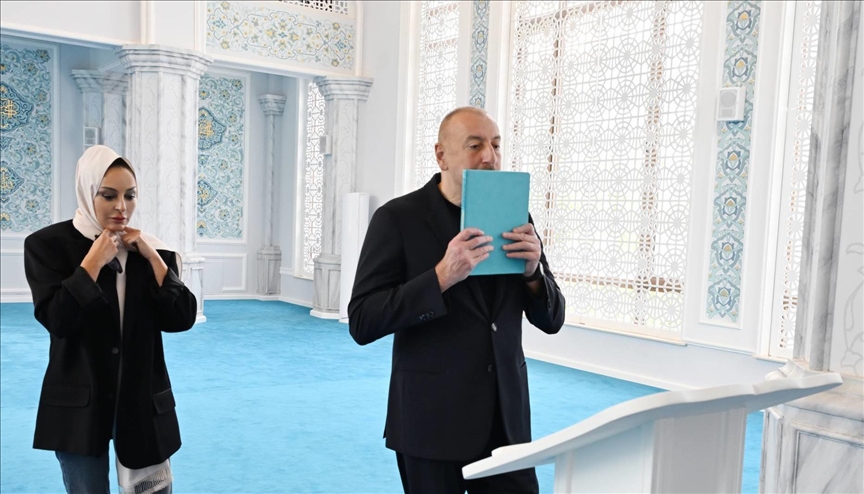 President Ilham Aliyev of Azerbaijan attended the opening of the newly restored Zangilan Mosque in the Karabakh region on Saturday.