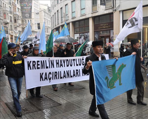 Crimean Tatars protesting against Russia in Istanbul on Wednesday have accused the superpower of hindering religious practice in the former Ukrainian territory.
