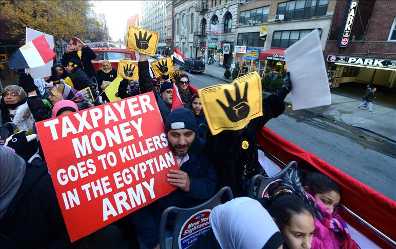 Egyptians living in and around New York organized the unique demonstration to protest against General Abdel Fattah Saeed Hussein Khalil el-Sisi and the interim administration, who are considered to have overthrown Egypt’s first democratically elected civilian President Mohammed Morsi.