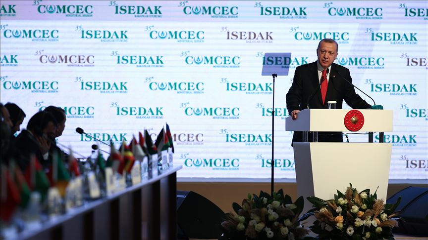 Recep Tayyip Erdogan’s remarks came at the opening ceremony of 35th Ministerial Meeting of the Standing Committee for Economic and Commercial Cooperation of the Organization of the Islamic Cooperation (COMCEC).