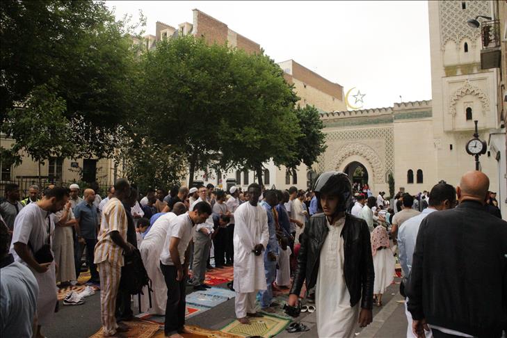 Over 2,000 Muslims living in Paris congratulated each other after the prayer at the capital's Grand Mosque.