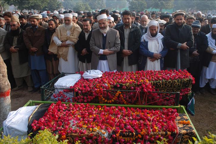 TV footage showed emotional scenes as friends and relatives of students wailed at their funeral prayers in Peshawar, Lahore, Rawalpindi, Mardan, Noshera, Swabi, and numerous other districts.