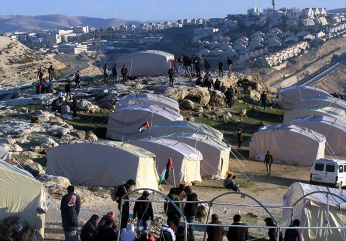 Previosly, Palestinian protestors had set up 30 tents in "E1" zone in the east of Jerusalem in order to protest illegal Jewish settlements in 3,000 residences to be built by Israel. Israeli Prime Minister Binyamin Netanyahu ordered security forces for the removal of tents.