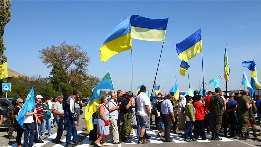 Tatar activists on Sunday blocked the two main roads leading into Crimea from Ukraine to emphasize the plight of Tatars in the Russian-annexed territory.