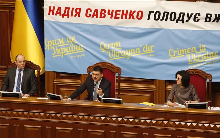 Ukrainian MPs protest Russian invasion with Crimea banner