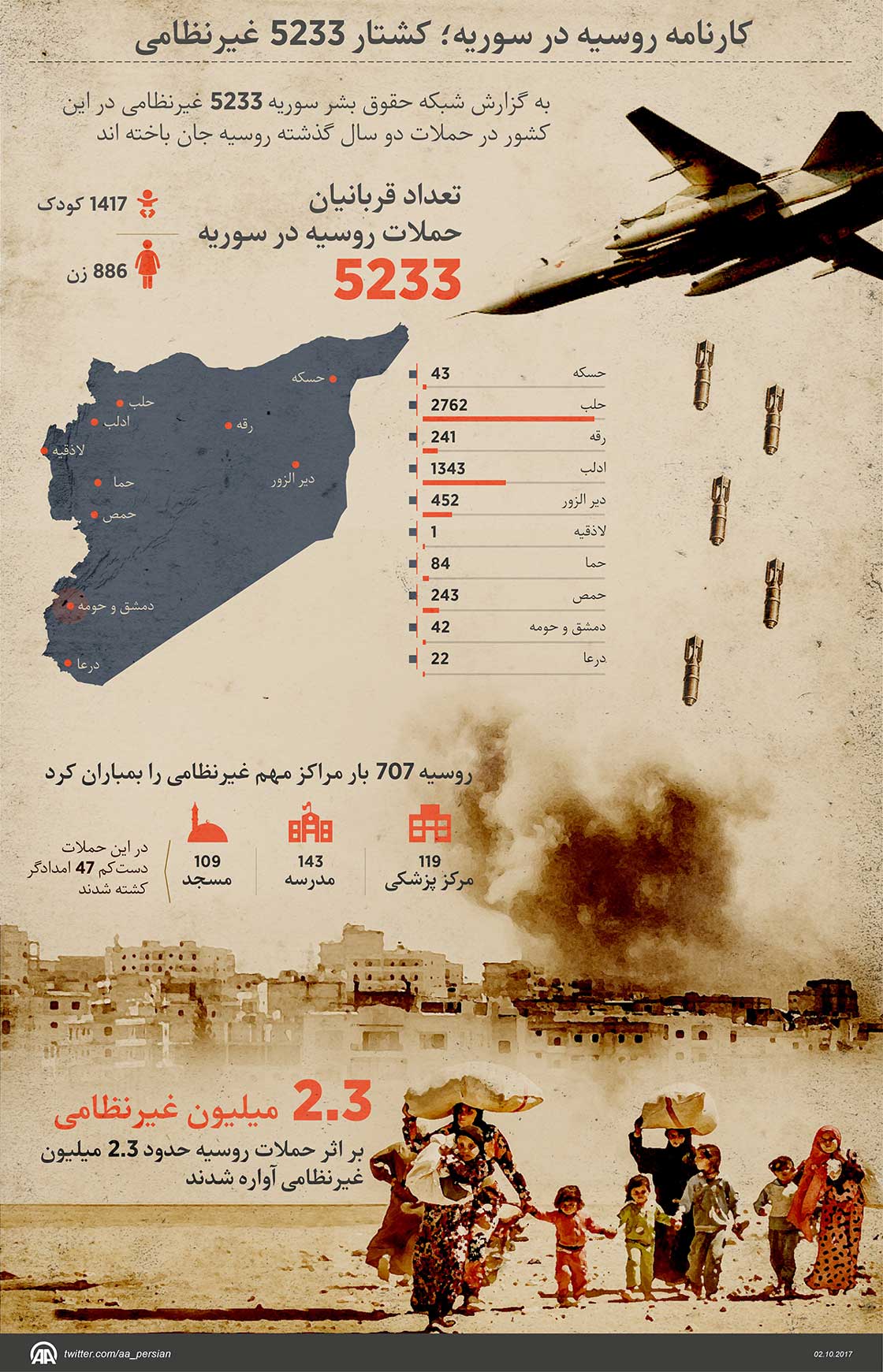 کارنامه روسیه در سوریه؛ کشتار 5233 غیرنظامی