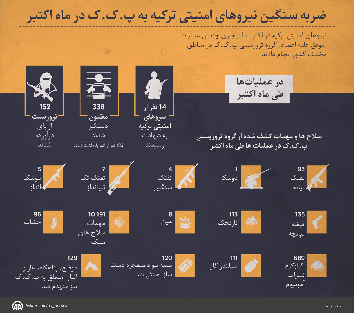 ضربه سنگین نیروهای امنیتی ترکیه به پ.ک.ک در ماه اکتبر
