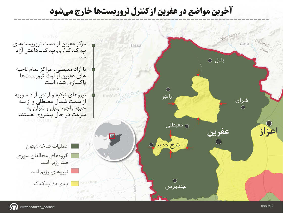 آخرین اهداف در عفرین طی عملیات شاخه زیتون به کنترل در می آیند