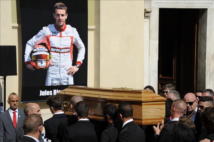 Bianchi, 25 ans, était en état de coma depuis octobre 2014, où il avait subi un sévère accident lors du Grand Prix de Japon. Il s'était éteint vendredi au Centre hospitalier universitaire de Nice où il était en traitement.