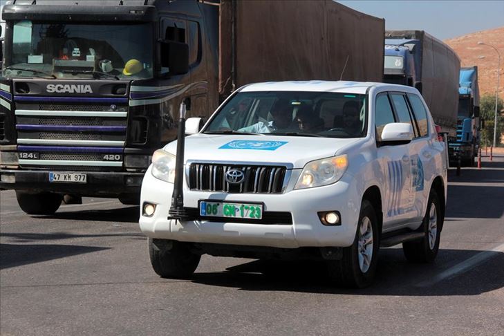 Les camions d'aide de l'ONU ont traversé le poste frontière de Cilvegozu à Reyhanli, district de la province turque de Hatay (sud), après les contrôles d'usage, lundi.
