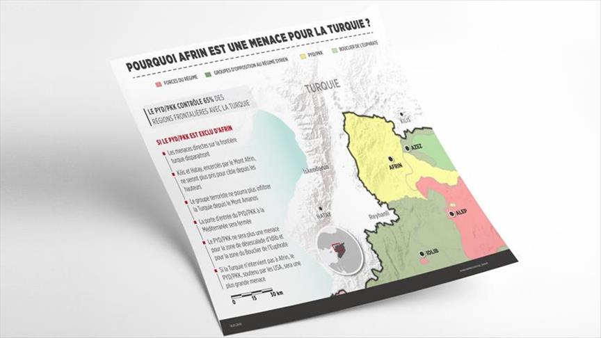 En se concentrant dans la région d’Afrin (nord-ouest de la Syrie), le PYD/PKK menace la zone de désescalade d’Idlib et la région libérée par l’opération turque Bouclier de l’Euphrate. De plus, Afrin est en mesure d’offrir un accès à la Méditerranée.