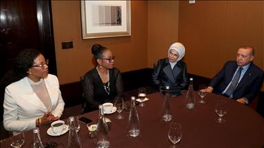 Le président Erdogan était accompagné par son épouse, Emine Erdogan, et Melania Trump accompagnait son époux, le président américain.