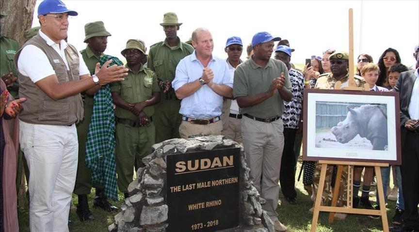 Sudan, badak putih utara jantan terakhir mati yang mati pada 20 Maret di usia 45, pada Sabtu bergabung dengan 18 badak ikonik lainnya dalam sebuah peringatan di konservatori di kaki Gunung Kenya.