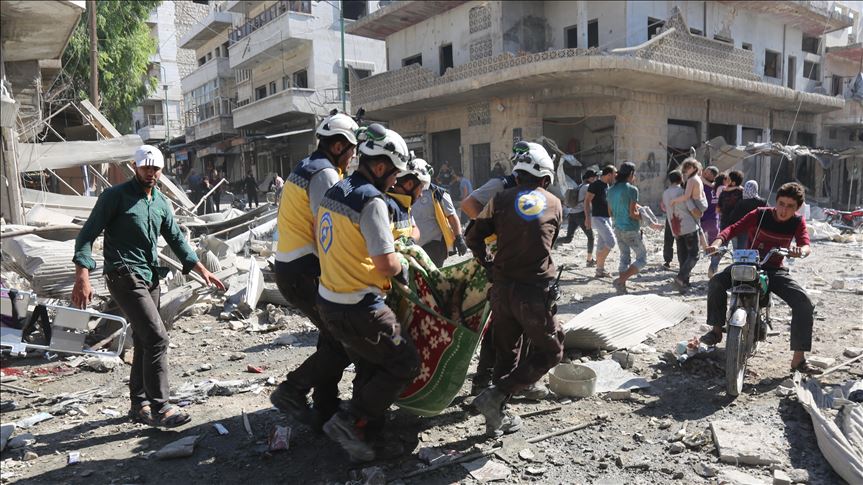 Pesawat tempur milik pasukan rezim Assad dan Rusia pada Senin pagi melancarkan serangan udara ke distrik Marratinnuman, desa Bidama, Kanbbinah, dan Tal Mennish, kata direktur White Helmets.