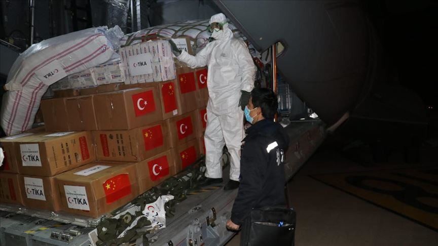 Turkish Cargo mengangkut bantuan kemanusiaan dan medis ke Kota Guangzhou, China, di mana setidaknya 1.114 orang telah tewas karena wabah Covid-19, Rabu.