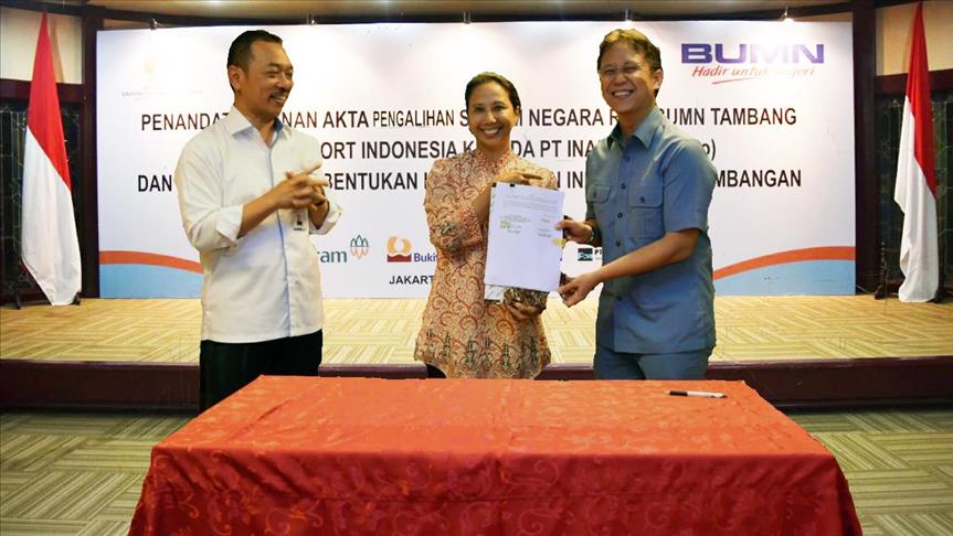 Sebanyak 95 persen pemegang saham publik juga menyetujui penggabungan. Ketiga perusahaan tersebut menyerahkan masing-masing 65 persen saham seri B pada Inalum sebagai penyertaan modal negara.