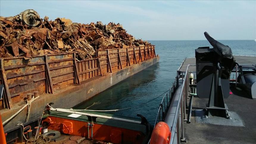 Dari lokasi kejadian, petugas menemukan slongsong peluru dan beberapa proyektil, di antaranya proyektil besar berukuran 40 mm di antara tumpukan bangkai kapal di atas tongkang.