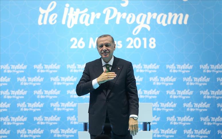 Erdogan memberikan pidato kepada petugas polisi dalam acara buka puasa bersama di Istanbul.