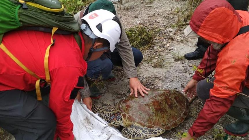 Kementerian Lingkungan Hidup dan Kehutanan (KLHK) Republik Indonesia menyelamatkan 18 ekor penyu yang terdampar di Pantai Tanjung Lesung, Pandeglang, Banten, akibat tsunami yang melanda Selat Sunda.