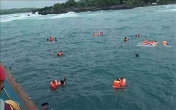 Basarnas dan BPBD Bulukumba terus mencoba mengevakuasi penumpang yang terlihat mengapung di perairan.