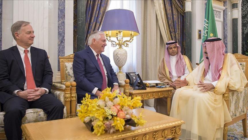 Raja Saudi Salman bin Abdulaziz mengadakan pembicaraan dengan Menteri Luar Negeri Amerika Serikat Rex Tillerson di Riyadh, Minggu.
