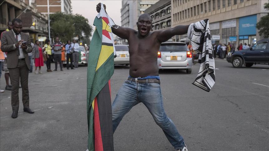 Stasiun televisi Afrika Selatan Enca menampilkan perayaan warga Zimbabwe yang memadati jalanan di ibu kota Harare.