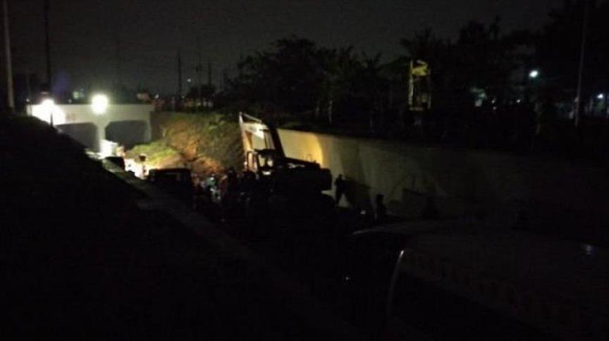 Tembok underpass pun runtuh menutupi badan jalan pada pukul 17.00 WIB. Akibatnya, sebuah mobil yang tengah melintas tertimpa material tembok yang ambrol.