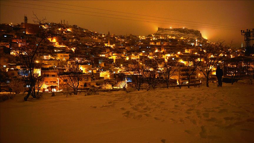 Mêrdîna ku bi şevan dibe bajarê stêrkan û dîmenên ciwan bi kombînasyona mîmarî û tebîetê li ber çavan radixîne bi berfa zivistanê wek bûkekê xemilî.