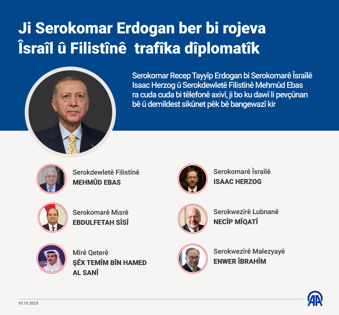 Ji Serokomar Erdogan ber bi rojeva Îsraîl û Filistînê trafîka dîplomatîk