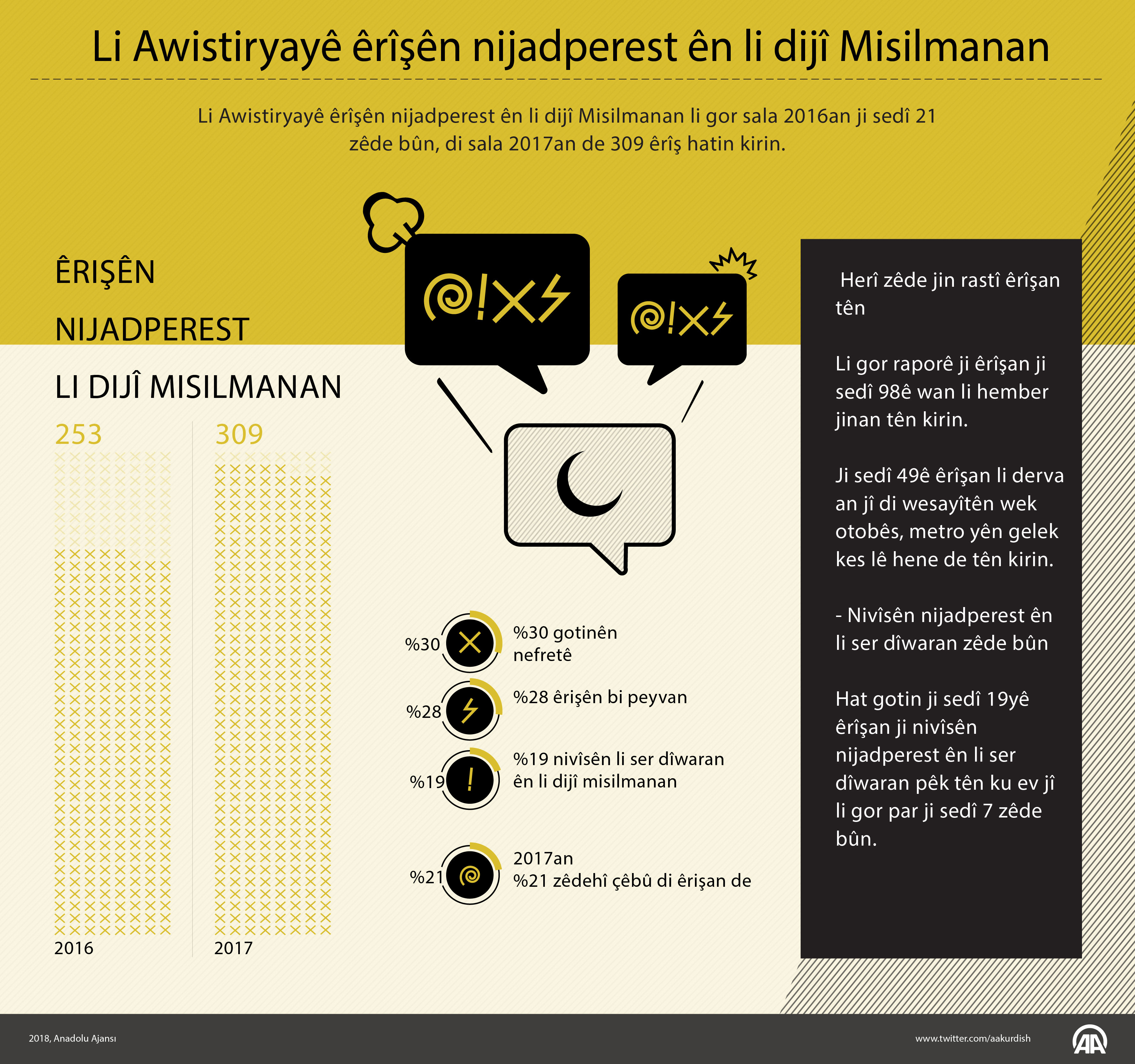 VIYANA (AA) - Navenda Dokumantasyon û Şêwirmendiyê ya Ji Bo Misilmanên Awistiryayê bi civîneke çapemeniyê "Rapora Nijadperestiya Dijî Misilmanan a 2017yan" bi raya giştî re parve kir.