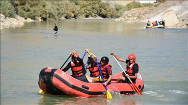 Ji ciwanan Dogukan Aydin got ji bo ku ji keleqija havînê xilas bibin di çemê Botanê da raftîngê dikin.
