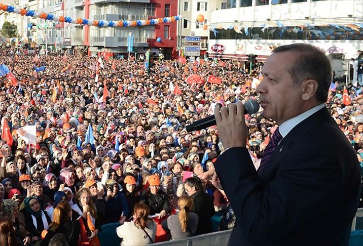 Erdogan destnîşan kir ku saziyeke paralel bi têkiliyên xwe yên di nav hêzên ewlehiyê û darazê de ev ji 3 salan zêdetir e ku guh dide telefonên bi hezaran mirovî. Erdogan got ku di nav kesên ku tên guhdarkirin de wezîr, parlementer hene û axaftina xwe wiha berdewam kir: "CHP, MHP, BDP ev hemû, partiyên siyasî hemû hene lê ew bi xwe tune ne. Birayên min aya ev ji bo çi ye, ji bo şantajê ye. Dixwazin ku bi deq û dolaban her cihê ku dixwazin bixin di bin qontrola xwe de. He lê binêrin û bînin bîra xwe ku mijara dersxaneyan derket. Çima aciz bûn, ji ber ku li wir salane milyar dolarek ranta wan heye. Teqez zarokên xwe neşinîn van dersxaneyan. Bişînin dibistanên dewletê û neşinîn cihek din ji ber ku ev dikevin canê mirov û heta xwîna mirov jî hemû dimijin. Ji niha pê de heke dê û bav bixwazin em dê dawiya hefteê dersên zêde bidin zarokên xwe, bila zarokên me li wir bikevin pêşbirkê. Li dibistanên taybet pereyan distînin pişt re diçin dersxaneyan, ev kareke çawa ye."