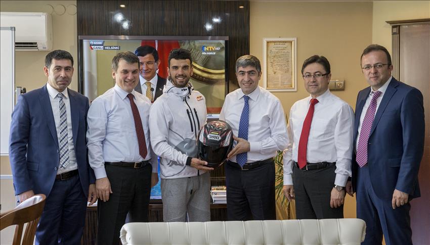 Motorsîkletvanê Neteweyî Kenan Sofuogluyê ku şampiyonê dinyayê jî salvegera 96emîn a damezrandina Ajansa Anadoluyê pîroz kir.