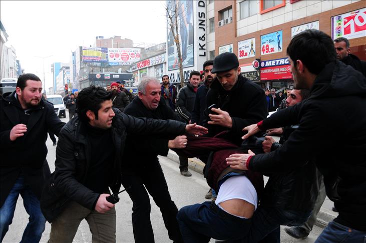 Koma ku bi pêşengiya BDPyê li kolana Komarê li kuçeya Hunerê civiya xwest ku salvegera anîna Abdullah Ocalan a li Tirkiyeyê protesto bike û bimeşin. Kom bêdestûr meşiya û polêsan midaxeleyî komê kir û di navbera çalakvan û polêsan de pevçûn derket.