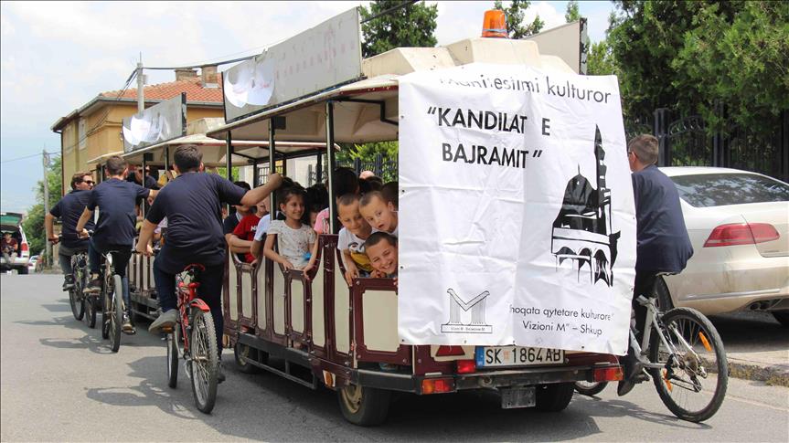 SHKUP (AA) - Fëmijë të shumtë, të shoqëruar nga prindërit e tyre, kishin ardhur para xhamisë së Mustafa Pashës në Kala të Shkupit, për shëtitjen tradicionale me tren, një ditë para festës së Fitër Bajramit, në kuadër të manifestimit tradicional "Kandilat e Bajramit”, të cilin për çdo vit e organizon Shoqata Kulturore "Vizioni M", raporton Anadolu Agency (AA).