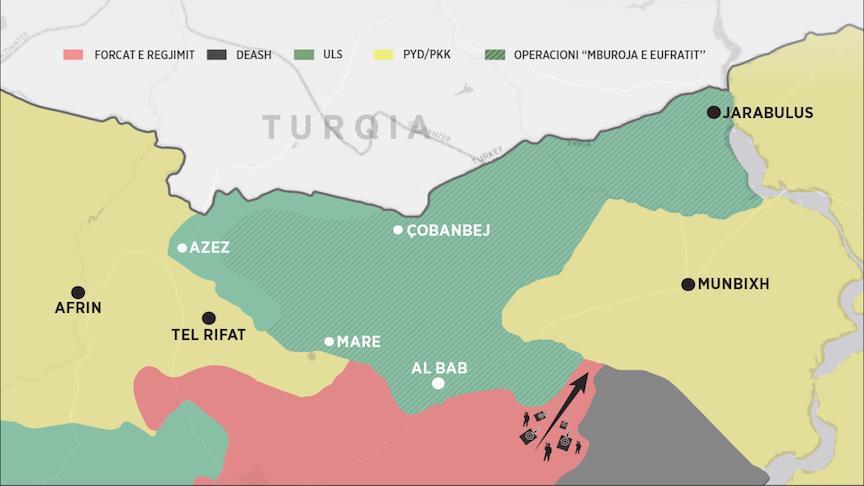 Turqia ka propozuar operacion të përbashkët të forcave të koalicionit në Rakka, pa pjesëmarrjen e grupeve terroriste PKK/PYD. Megjithatë, bashkimi i forcave të regjimit të Assadit me Munbixhin në të cilin ka kontroll PKK/PYD mund të sjellë deri te bashkëpunimi i tyre intensiv.