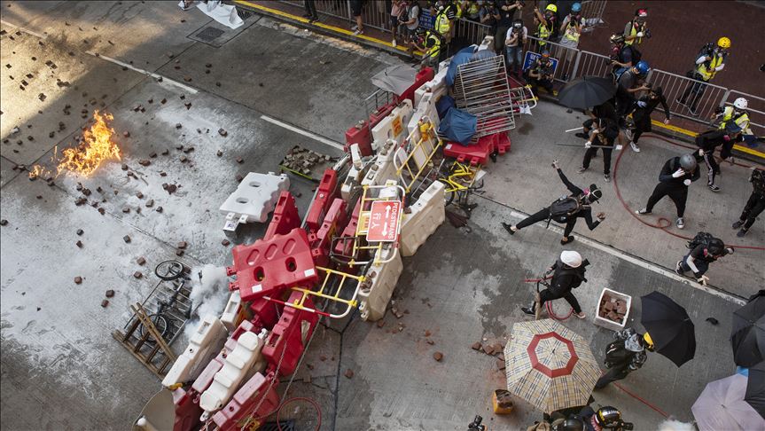 Protestuesit në Hong Kong shkelën flamurin kinez, vandalizuan një stacion metroje dhe vunë zjarre nëpër rrugë pasi protestat pro-demokracisë morën një kthesë të dhunshme edhe një herë, transmeton Anadolu Agency (AA).