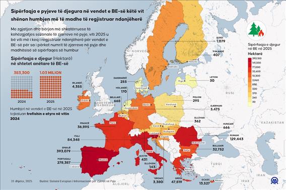 Sipërfaqja e pyjeve të djegura në vendet e BE-së këtë vit shënon humbjen më të madhe të regjistruar ndonjëherë