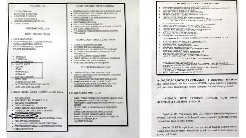 Uşak Cumhuriyet Başsavcılığınca FETÖ/PDY'nin finans ayağına yönelik yaklaşık bir yıldır süren soruşturma kapsamında hazırlanan iddianamede, örgütün eğitim kurumları, dershane, yurt ve özel okullarında yapılan aramalarda ele geçirilen belgeler ile öğrenci ailelerine yönelik gerçekleştirilecek düzenli ziyaretlerde sorulması gereken sorular ve uyulması gereken kuralların yer aldığı metinlere yer verildi.