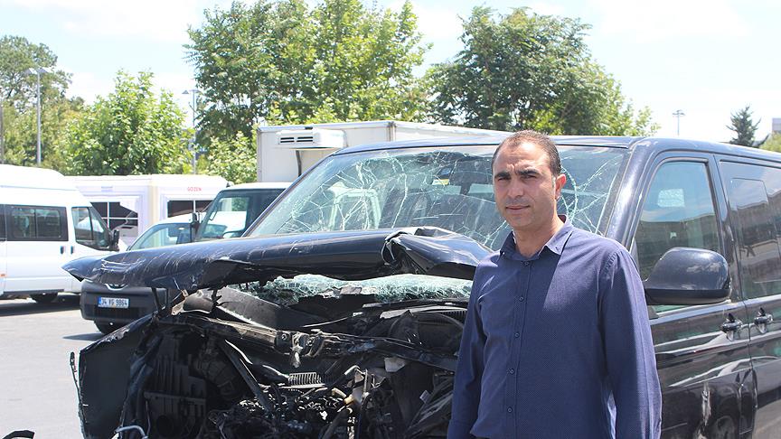 "O dakika tabii ki vatandaşlar daha fazla aşka ve şevke geldi. Kendilerini tankların önüne siper ettiler. Ben de kapıları içeriden kilitledim. 'Beni çıkarmasınlar, ezerseler de ezsinler' dedim. Tank, ilk hamlede arabanın üstüne çıktı, sonra geri çıktı. 10-15 saniye sonra tam gaza basarak, insanları eze eze, dağıtarak, bastı geçti. İkinci tankı bırakmadık, ikinci tank orada kaldı. Ertesi gün saat 04.00'e kadar buradaydık. Daha sonra artık tükendik. Emniyete gittik, arabamı buraya çektiler. Rapor falan tuttuk tabii. Araç kendi aracım."