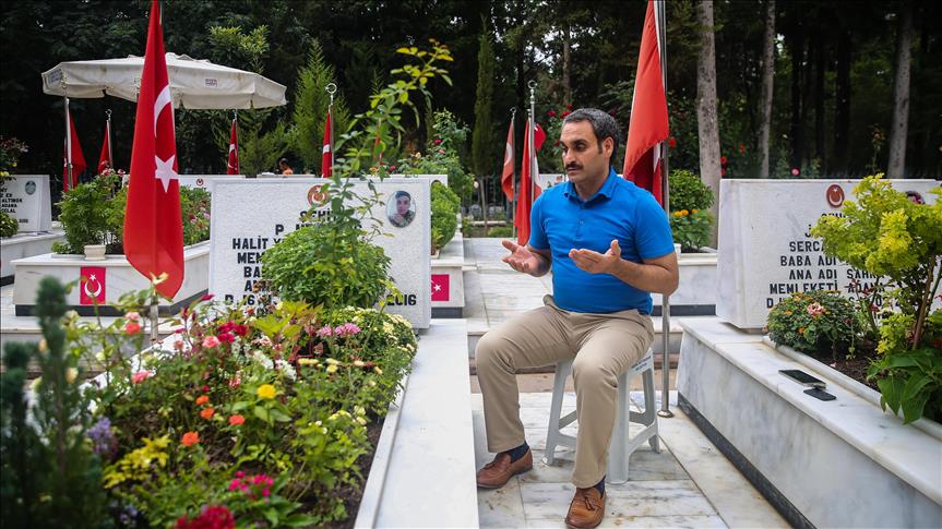 "(Allah'ım şehadeti bana nasip et) dedim. Ben oraya bu duyguyla gittim. Çocuklarımızın özgürlüğünü ve imanını kurtarma gecesiydi o gece. Tıpkı geçmişte dedelerimizin kazma kürekle, küçük çocukların oyun oynayarak Kurtuluş Savaşı'nda ülkeyi kurtardıkları gece gibi bir geceydi. Köprüye gittiğimde ürkütücü bir manzara vardı. Asker elbisesi giyerek kamufle olmuş o hainler halka ateş açıyordu. O gece 4 cenaze taşımak durumunda kaldım. Hiç kimse korkmadı, geri çekilmedi."