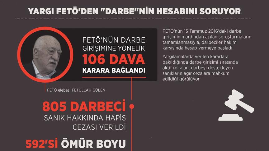 Darbe girişimiyle ilgili bugüne kadar açılan 283 davadan 106'sı karara bağlandı.
