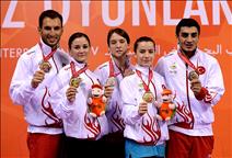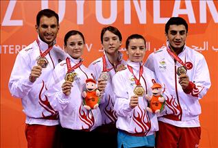 Cumhurbaşkanı Gül, 17. Akdeniz Oyunları'nda altın madalya kazanan sporcular, İlham Tanui Özbilen, Polat Kemboi Arıkan ve Melek Hu'yu kutladı.28 Haziran 2013