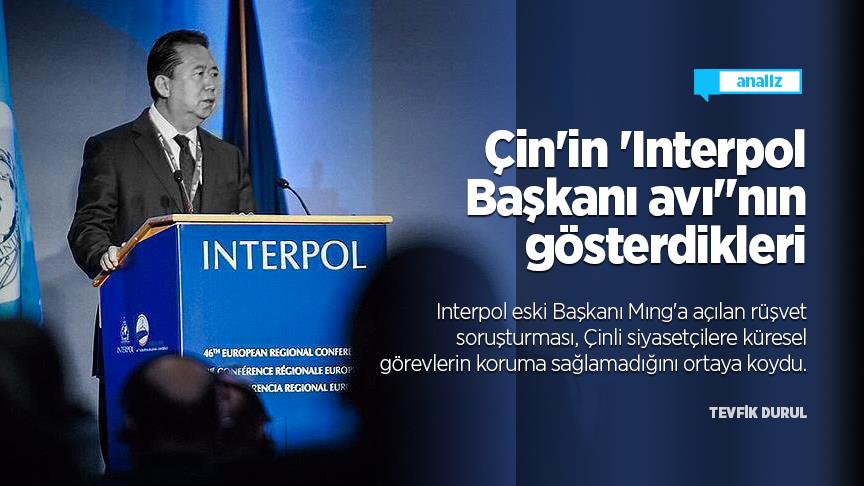 Uluslararası Polis Teşkilatının (Interpol) eski Başkanı Mıng Hongvey hakkında Çin Komünist Partisi (ÇKP) tarafından açılan rüşvet soruşturması, küresel görevleri bulunan Çinli siyasetçilerin bile ülkesindeki politik hesabını ödemeden "masadan kalkamayacağını" gösterdi.