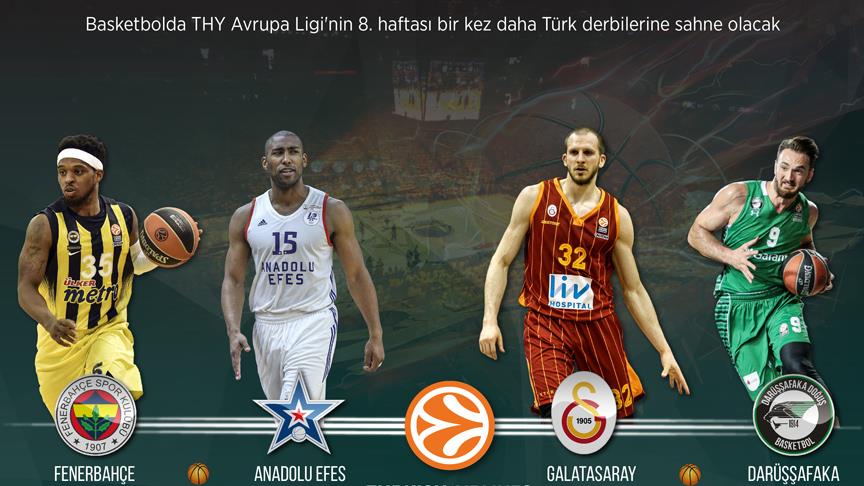 Basketbolda THY Avrupa Ligi'nin 8. haftası bir kez daha Türk derbilerine sahne olacak.