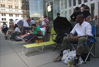 Ürünü Zorlu Center'daki Apple Store'dan almak isteyen 200'e yakın müşteri, mağazanın önünde kuyruk oluşturdu. Serin havada bekleyenlere ise mağaza çalışanları tarafından çay ve simit ikram edildi.