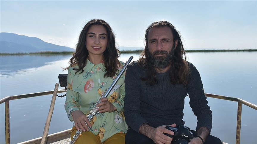 Çağlar da flütüyle doğanın güzelliklerine eşlik etmek için Eber Gölü'nde olduğunu kaydetti.