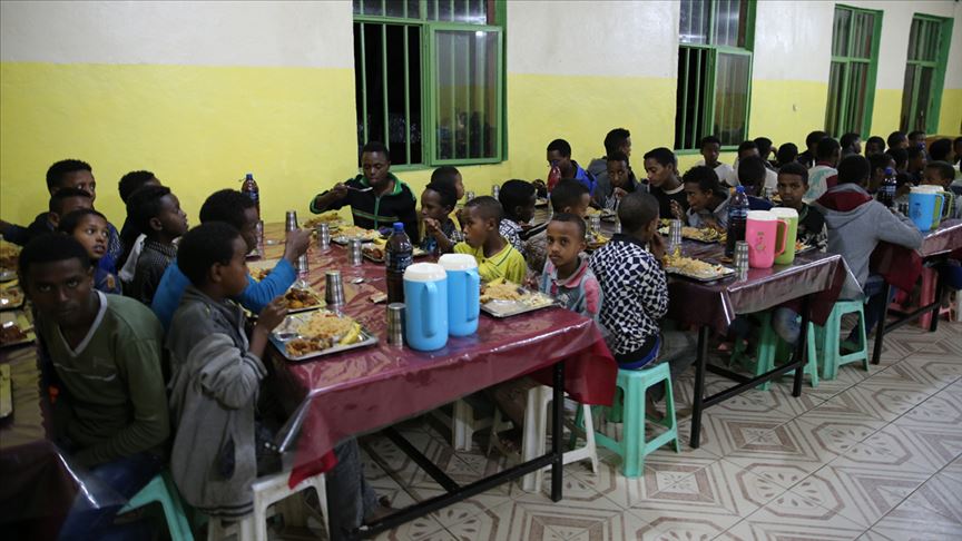 Somali'nin başkenti Mogadişu'da gençler, "desteği dışarıdan beklemek yerine elinden geldiği kadarını paylaş" ilkesiyle başlattıkları kampanya kapsamında iç göçmen durumundaki ihtiyaç sahibi ailelere iftar yemeği dağıtıyor.