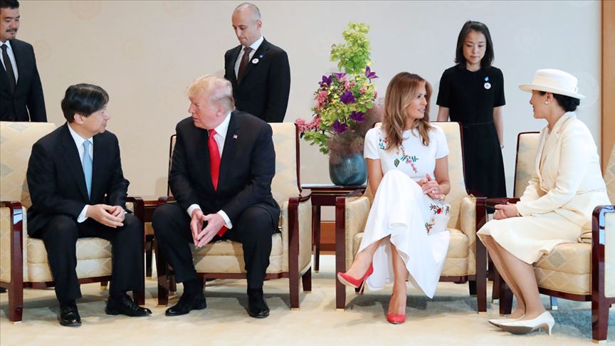 Dört günlük resmi ziyaret için Japonya'nın başkenti Tokyo'da bulunan Trump, İmparatorluk Sarayı'nın avlusunda düzenlenen karşılama töreninde Japon İmparator Naruhito ile kırmızı halı üzerinde yürüdü.