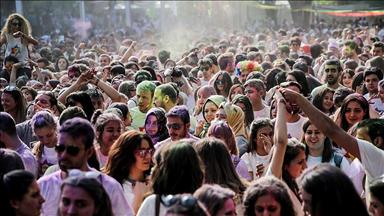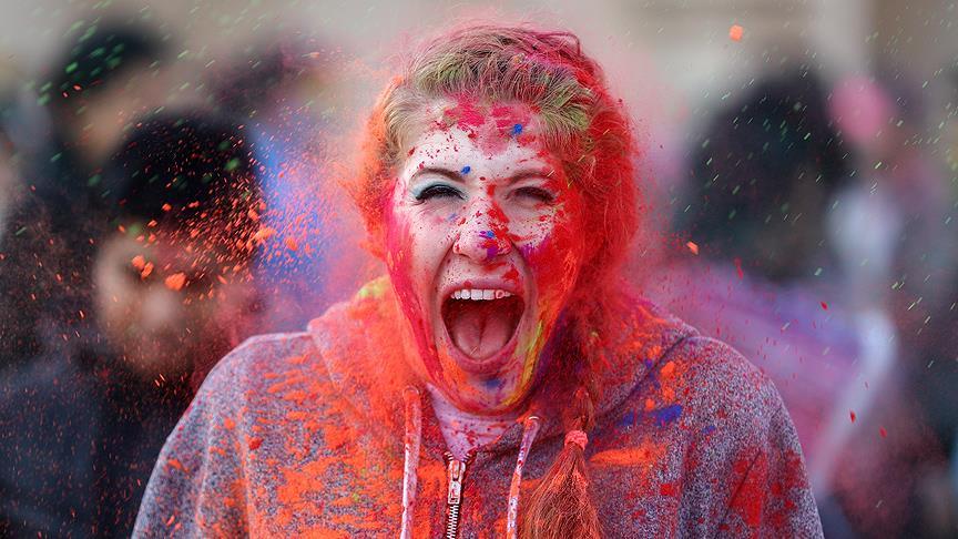 Hint müzikleri eşliğinde dans ederek yüzleri ve kıyafetlerine baharın renklerini sembolize eden boyaları süren yaklaşık bin kişi saatlerce eğlendi.
